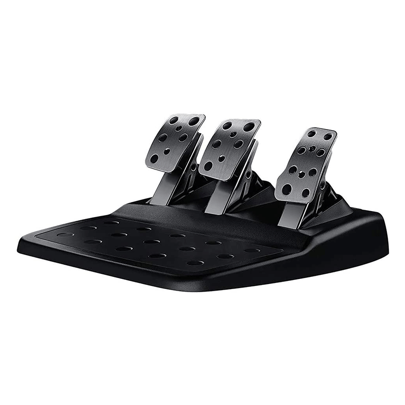 Immersive driving simulation comes to life in the details. Dual-motor force feedback makes you feel every tire slip and terrain change. Solid steel ball bearings in the wheel shaft give weight and durability. Stainless steel paddle shifters and floor pedals apply precision force. Hand-stitched leather covered wheel makes every car luxury. Helical gearing delivers smooth, quiet operation.
