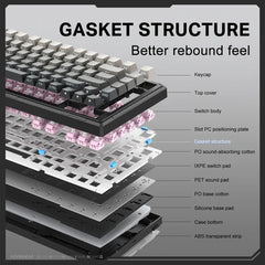 5-Layer Silent Gasket Architecture:Engineered with double sound-absorbing foam + IXPE+ slotted PCB + PET film + silicone pad, reducing 30% typing noise. Achieve ASMR-level quietness ideal for offices/livestreams while maintaining crisp tactile feedback.