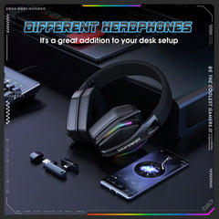 DescriptionRGB colorful lighting, breathing gradient lights, colorful and brightHD microphone, the microphone can rotate 120°A great addition to your desk setupBluetooth V5.4, wired, 2.4GHz, three modes to switch at willComfortable memory foam, comfortable to wear Specifications: Model GT826Sensitivity 117±3dBPlayback Time About 20HDirectionality All PointsBluetooth Version ...
