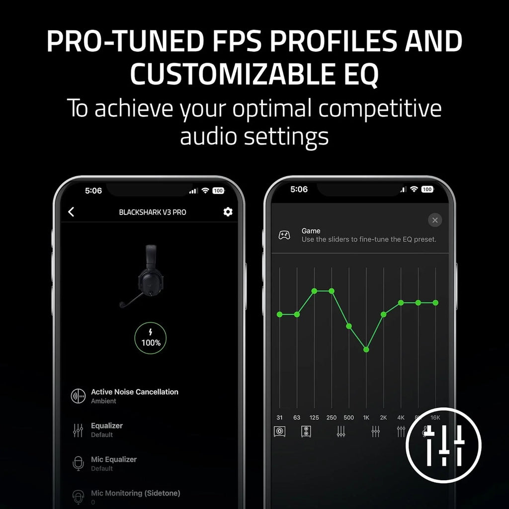 PRO-TUNED FPS PROFILES AND CUSTOMIZABLE EQ — Unlock an audio advantage with game-specific EQ profiles, precision-tuned with Razer's roster of esports champions; create custom EQs, save it to the headset, and be ready to compete anytime.