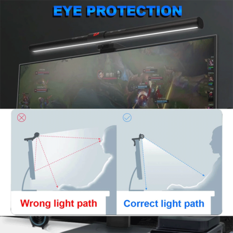 The assymetric light source design is used to Illuminate the range of the desktop directionally, without illuminating the screen and without glare while protecting the eyes.