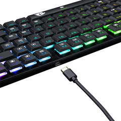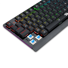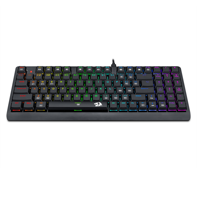 The Redragon Dragon Warrior is a wireless gaming keyboard and made with RGB lighting.Ultra-slim design with low-profile mechanical switchSoft touch/durable keyAdvanced wireless connectionN-key revolver94 key design in full metal chassisRGB backlighting