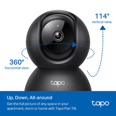 Monitor your home with the TP-Link Tapo C201 1080p FHD Pan/Tilt Home Security Wi-Fi Camera. With a 360° field of view and 1080p full HD video definition, this camera delivers crystal clear footage. Stay connected with two-way audio and up to 40ft of night vision. Easy to set up and compatible with wireless protocols.