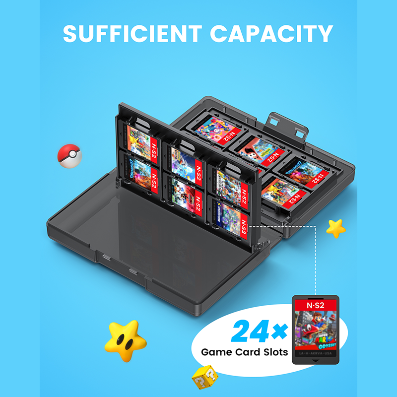 Secure & Snug Fit – Holds 24 Nintendo Switch game cards with precise 1:1 cut slots, ensuring a snug and secure fit without wiggling. No more lost or misplaced games.