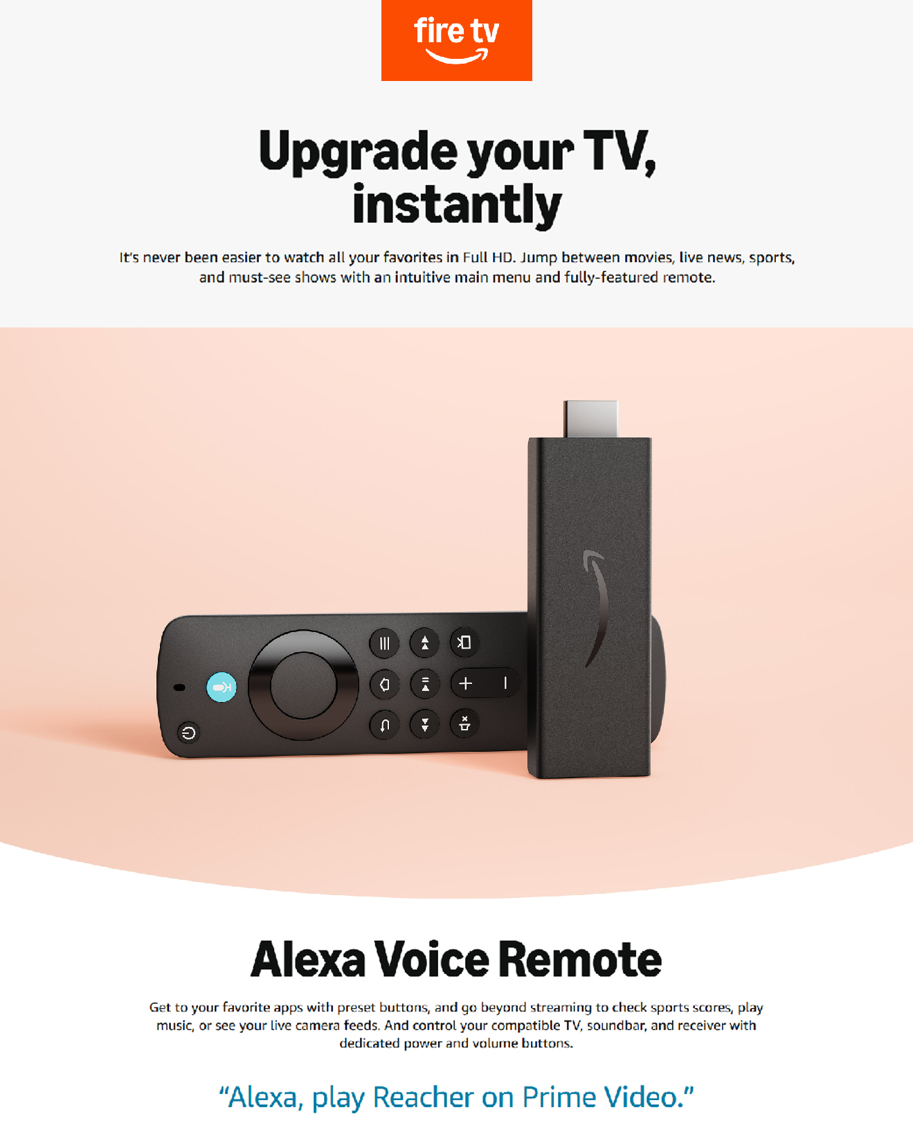 • Stream in Full HD - Enjoy fast, affordable streaming in Full HD, and control it all with the Alexa Voice Remote.
