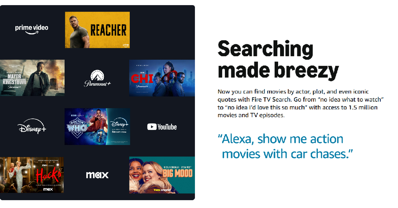 • Press and ask Alexa - Use your voice to easily search and launch shows across multiple apps.