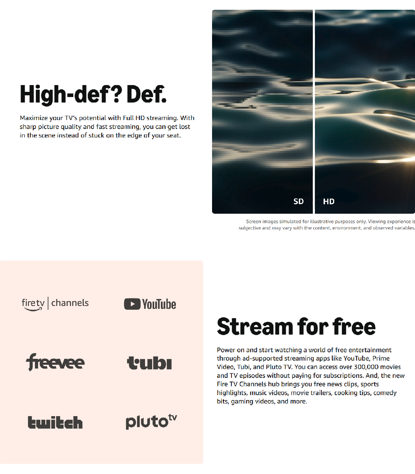 • Great for first-time streaming - Streaming has never been easier with access to over 300,000 free movies and TV episodes from ad-supported streaming apps like Prime Video, Tubi, Pluto TV, and more.