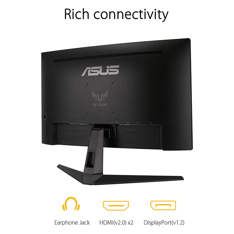 The 27-inch WQHD (2560 X 1440) panel of TUF Gaming VG27WQ1B delivers stunning visuals from all angles with an 1500R curvature that ensures every point is equidistant to your eyes. This contributes to greater viewing comfort — even during extended use —and lets you enjoy a wide viewing angle with less distortion and color shift when gaming and watching movies.