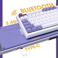 Darmoshark TOP75 keyboard has a convenient three-mode connection feature. Users can easily adjust the connection with the source device with three different modes, wireless 2.4GHz, wireless Bluetooth, and Wired USB Type-C connections are supported. The three-mode connection allows for easy connectivity with a variety of devices and supports multi-device connection and seamless Mac/Windows switching.