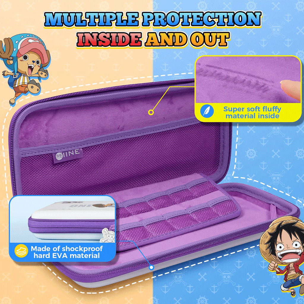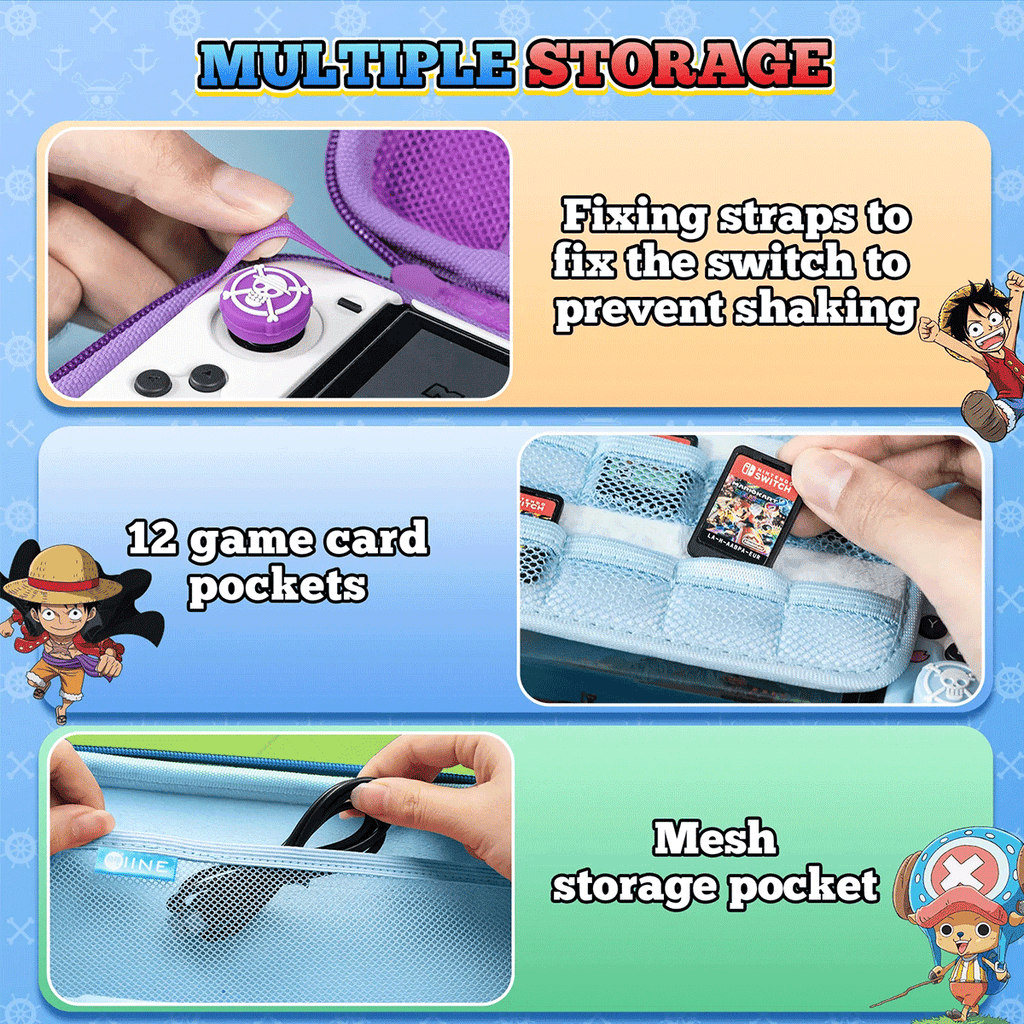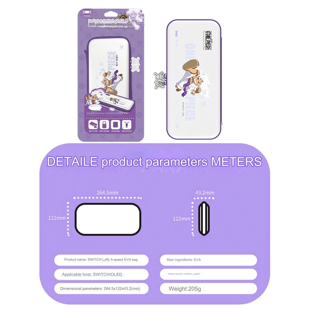 IINE Storage Bag for NSW/OLED (Monkey D. Luffy) L900Luffy 5 Speed Switch Storage bagHost accessories full set of storageCarefully protect the host and make it easy to carry when going outOpen mesh bag designGame Card SlotAnti-collisionMultiple protection inside and out Made of shockproof hard EVA material