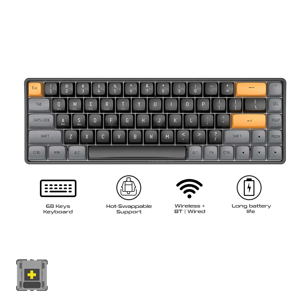 The DarkFlash GD68 Tri-Mode Wireless Mechanical Keyboard is a versatile and innovative keyboard designed for those who demand performance, flexibility, and customization in their typing experience. With its hot-swappable mechanical switches and multiple wireless connectivity options, it's a keyboard that adapts to your preferences and needs.
