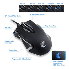 3. The default (500/1000D/2000/3000/5000) 5 levels of DPI switching, the software supports 200-10000 DPI ultra-large range free setting