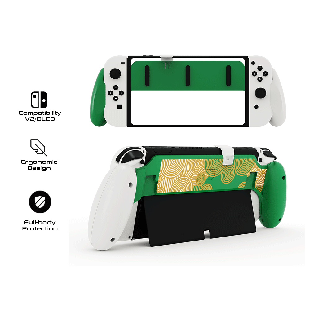 Good CompatibilityExtendable body allows you to use it not only on Switch OLED, but also regular Switch. Perfect Fit Easy to install and remove with the Slide-in design, providing players with greatest convenience. Ergonomic design Allows hours of play without fatigue, all buttons ,ports and original kickstand remain accessible, leaving...
