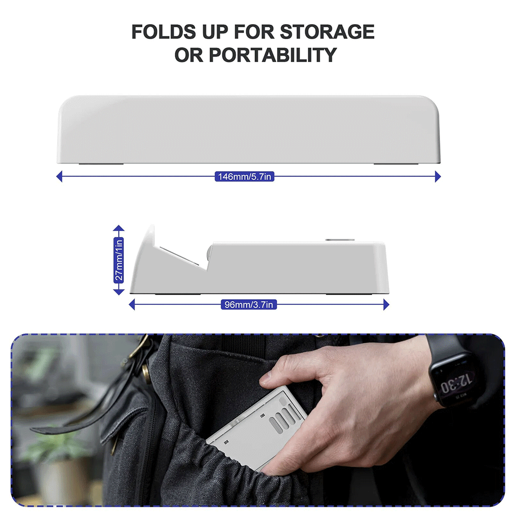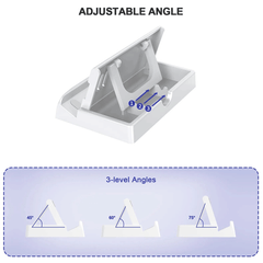 Playstand holds ROG Ally /Steam Deck/ Nintendo Switch/Mobile phone upright; offers adjustable angle for comfortable viewing.