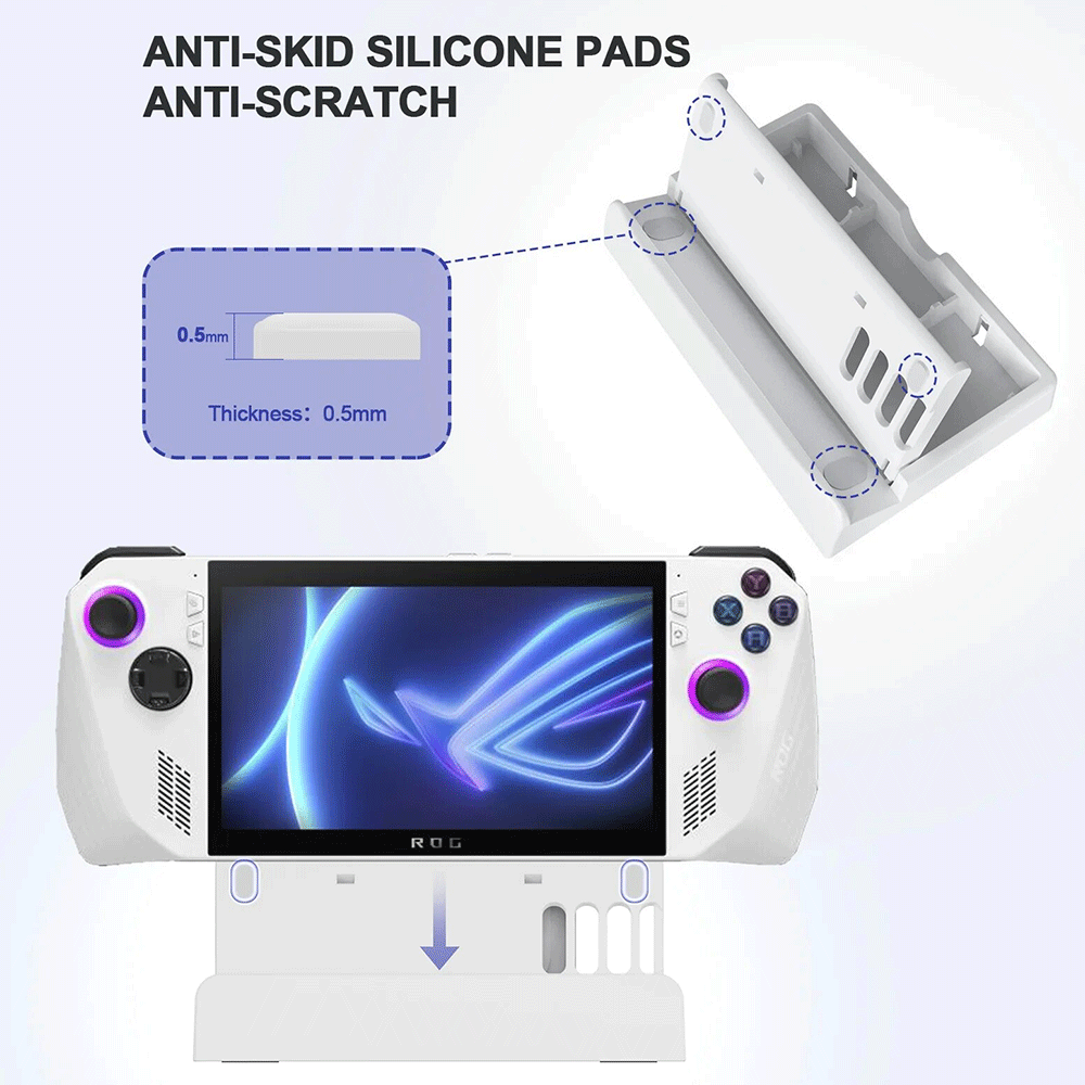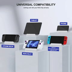 Three adjustable gear angleThe back of the bracket is equipped with heat dissipation holes, so there is no need to worry about heat dissipation. Bottom anti-slip pad design provides better stability Universal PlaystandPlaystand holds ROG Ally /Steam Deck/ Nintendo Switch/Mobile phone upright; offers adjustable angle for comfortable viewing. Chagring while...