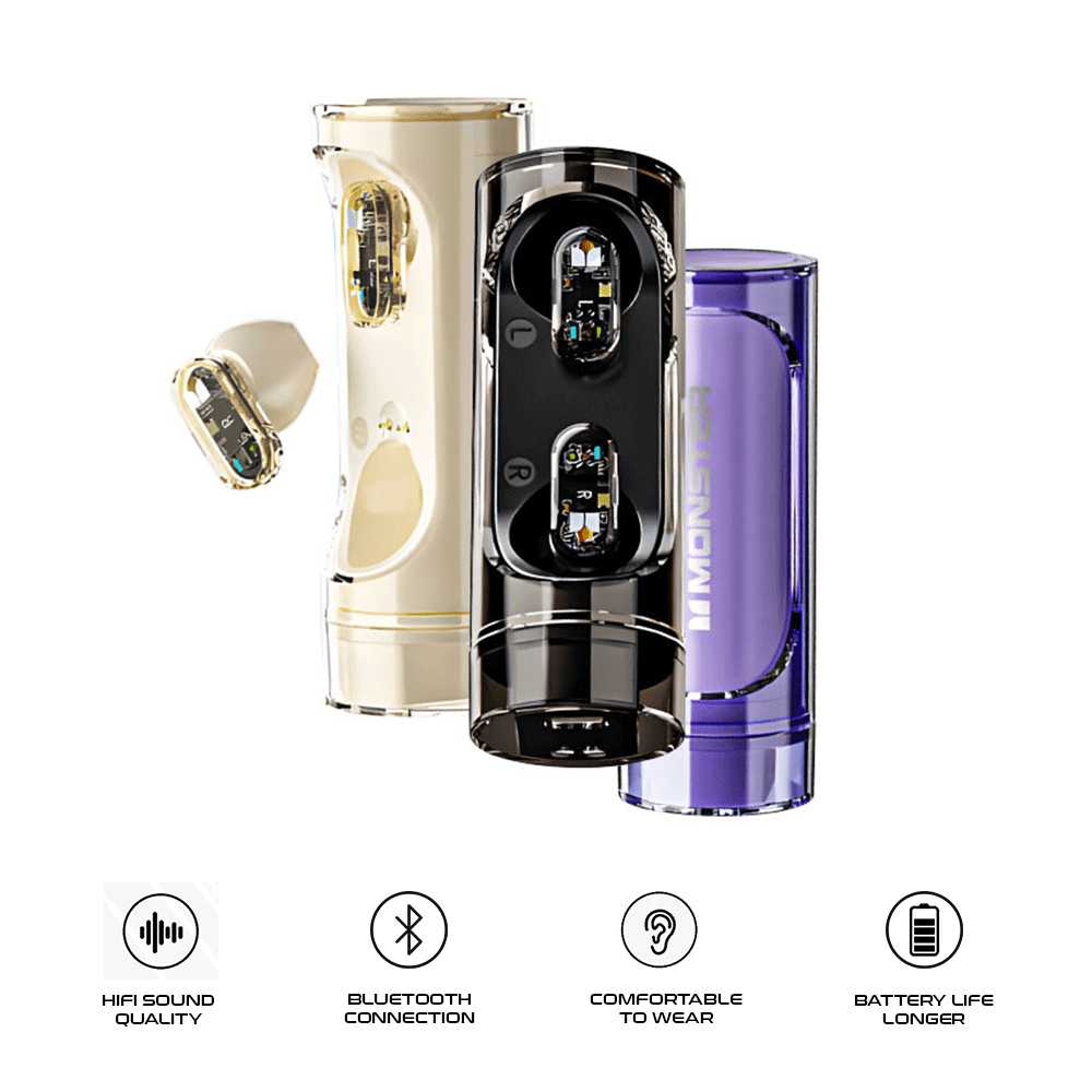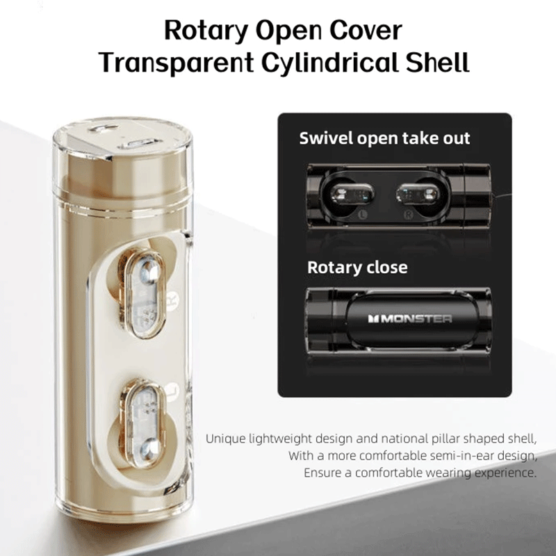 SPECIFICATIONProduct model - Monster Airmars XKT13 Bluetooth version  - V5.3 Horn unit  - 13mm Bluetooth effective range  - ≥ 10m Charging port  - Type-C Overall sensitivity  - -106dB±3dB Frequency response  - 20Hz~20KHZ Maximum power  - 5mW*2 Music playing time  - About 3 hours Channel system  - stereo Battery capacity  - 25mAh(headset)+ 200mAh(charging bay) Charging time  - About 1.5 hours