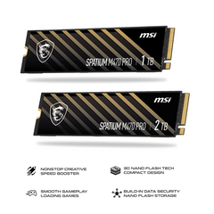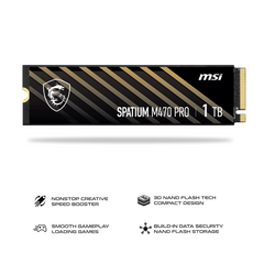 The MSI SPATIUM M470 Pro PCIe 4.0 NVMe M.2 SSD offers exceptional storage performance with capacities of 1TB and 2TB. Leveraging PCIe 4.0 technology, it delivers ultra-fast read and write speeds, minimizing loading times and enhancing system responsiveness. Designed for gamers and professionals, this SSD ensures reliable data transfer, improved multitasking, and efficient handling of large files, making it ideal for high-demand computing environments. Its M.2 form factor ensures easy installation and compatibility with modern motherboards.