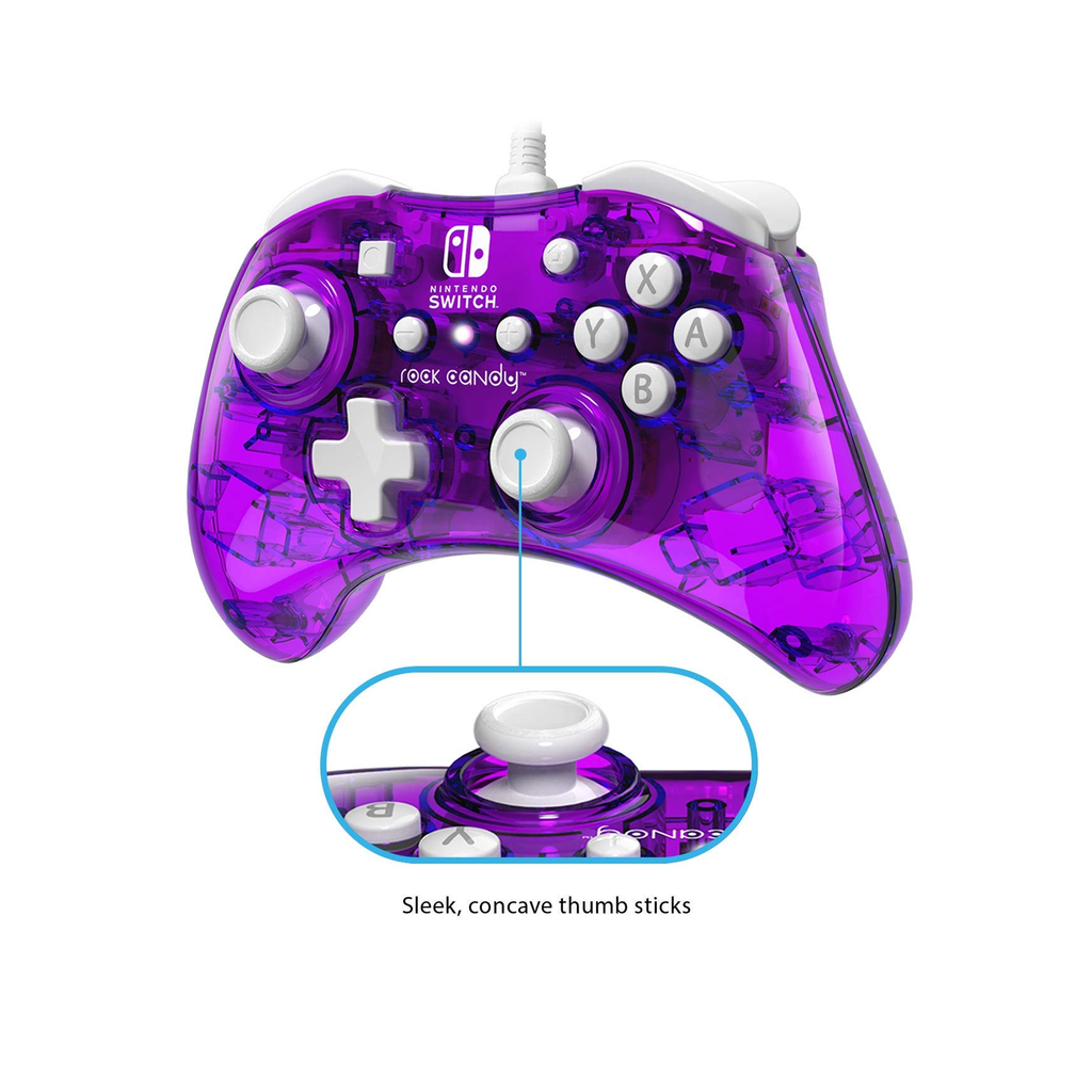 Pick your flavor with the Rock candy wired controllers for Nintendo Switch! Get the sweetest Controller on the market in new, even more vibrant colors. Express yourself and choose your favorite! These vibrantly colored controllers feature clear polycarbonate shells that allow you to see into the controller's inner circuitry, while...