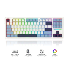 The Redragon K728WBB Antonium Pro delivers professional-grade performance in a compact 87-key TKL layout. Featuring gasket-mounted switches for superior typing feel and reduced noise, this mechanical keyboard combines wireless connectivity with wired reliability. RGB backlighting customization lets you personalize your setup, while the white and blue colorway adds modern aesthetics to any gaming or work environment. Built for precision and durability, it's engineered for gamers and professionals who demand responsive, tactile feedback without compromise.