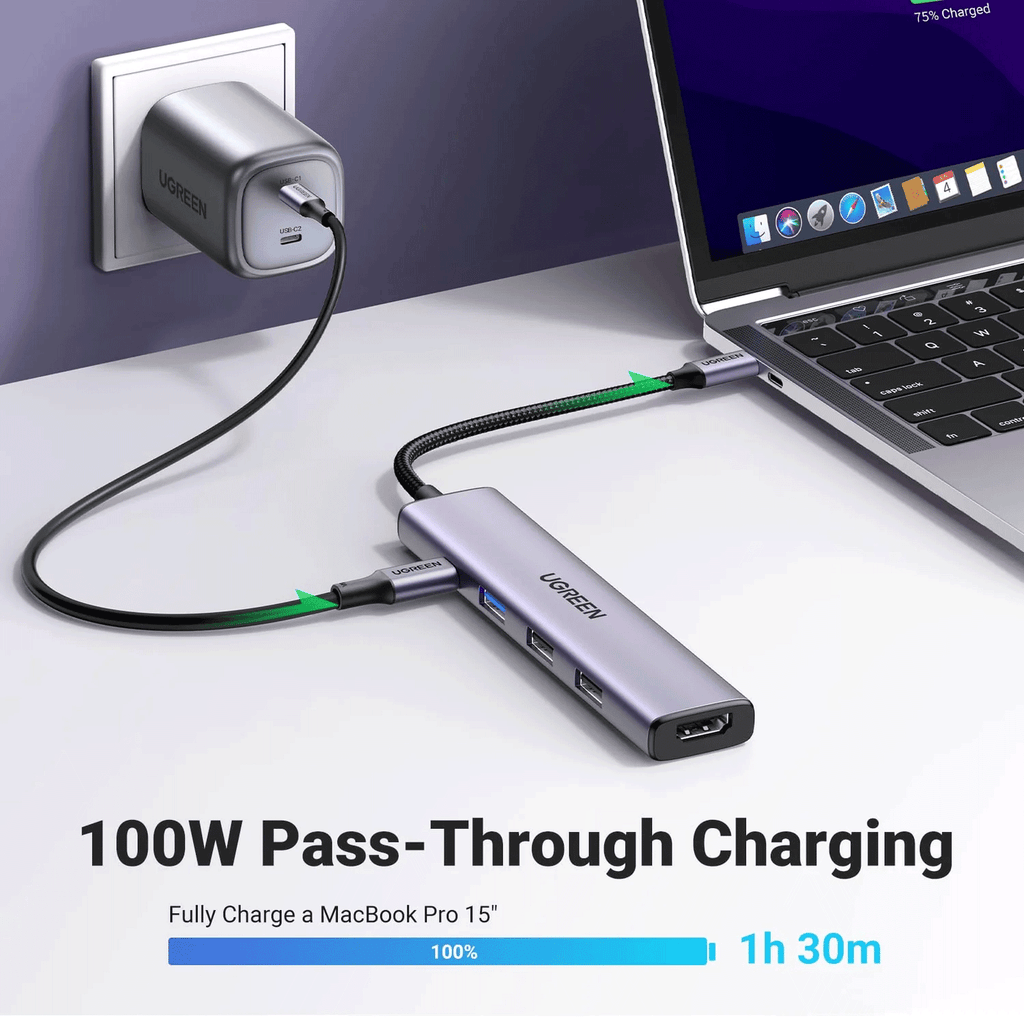 100W Charging: UGREEN USB C Hub features a 100W USB-C PD port for fast laptop charging at home or on the go.