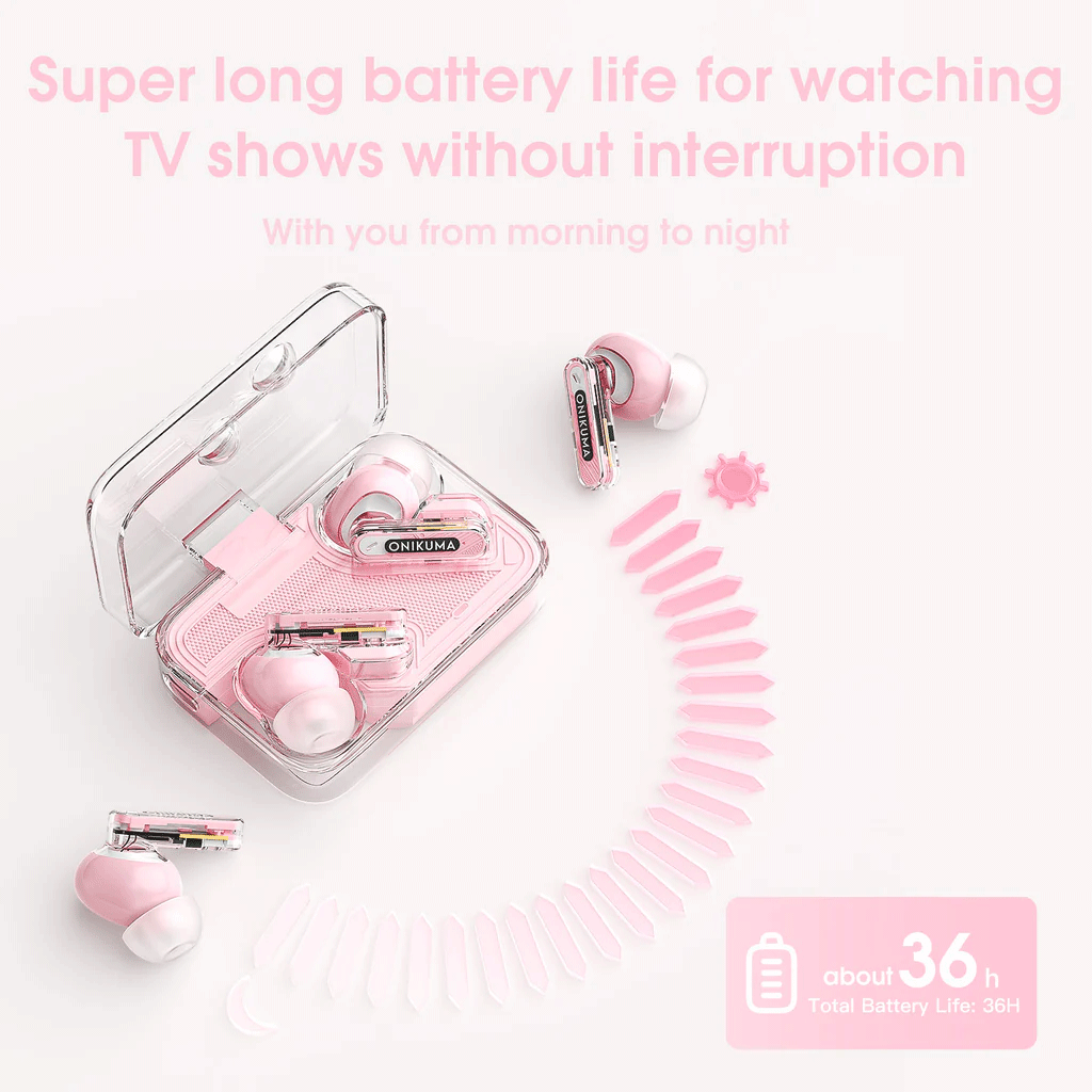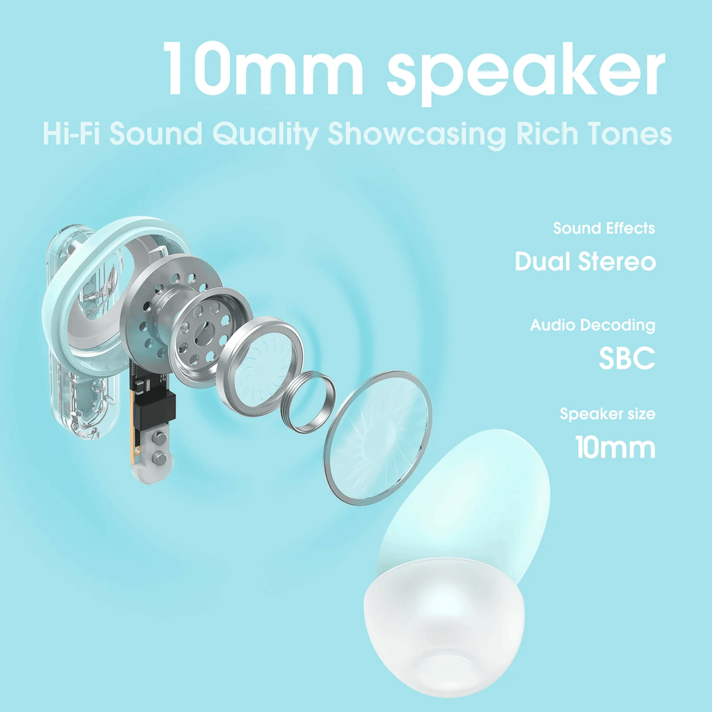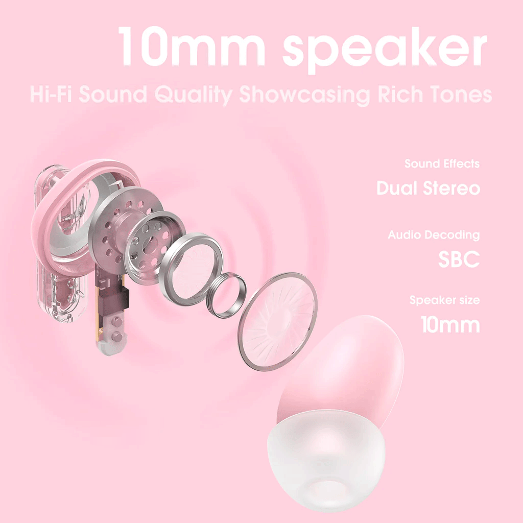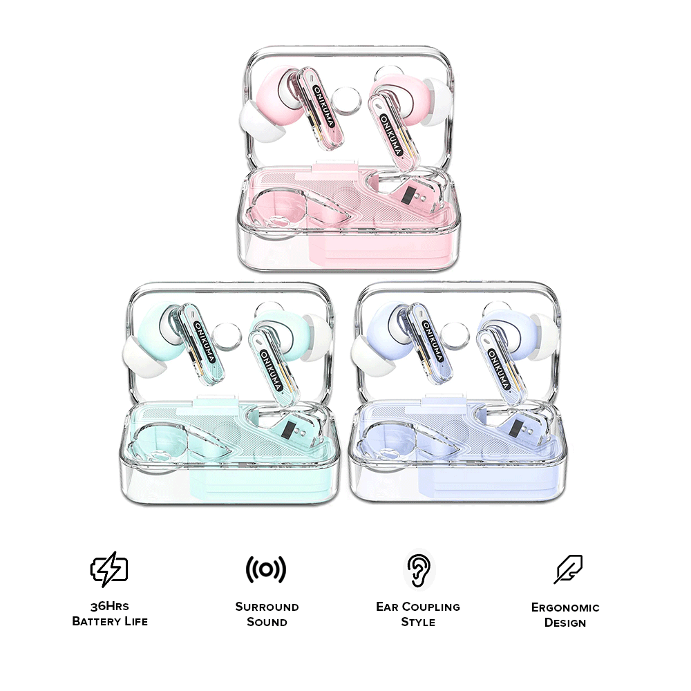 Features: Touch ControlInterface: Type CWireless Version: 5Driver Unit: 10mmEar Coupling Style: Ear Buds (Intra-Concha)Impedance Range: up to 32 ΩPrinciple of Sound Production: DynamicColor: Pink, Blue, PurpleType: In-earMaterial: PlasticPower Supply: RechargeableBattery Type: UN 3091
