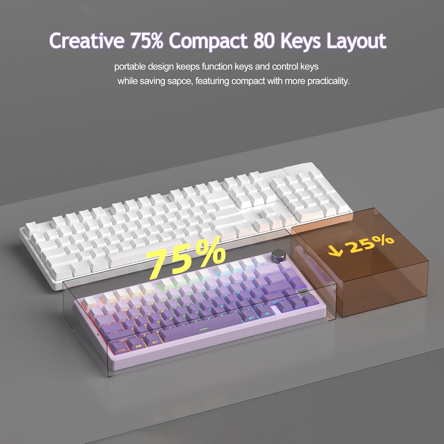 The 80-key design maximizes desk space without sacrificing functionality, offering a perfect balance between efficiency and minimalist style.