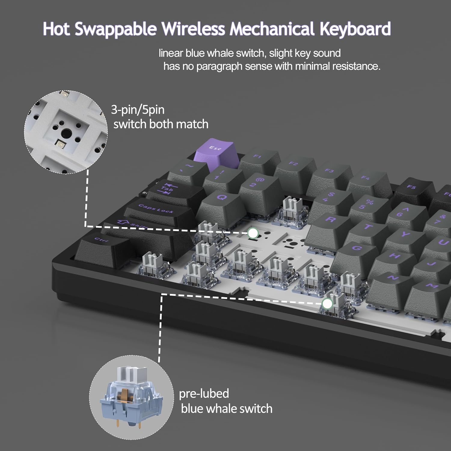 MageGee wireless mechanical keyboard Light87 is with different colors and switches for options. You can choose the right version you like.