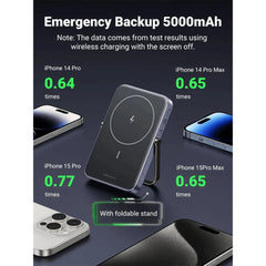 Emergency Backup 5000 mAh: Magsafe power bank provides emergency backup power for your iPhone, it can wirelessly charge an iPhone 15 Pro Max up to 0.65 times, this capacity ensures you can keep your iPhone powered on when away from a wall outlet