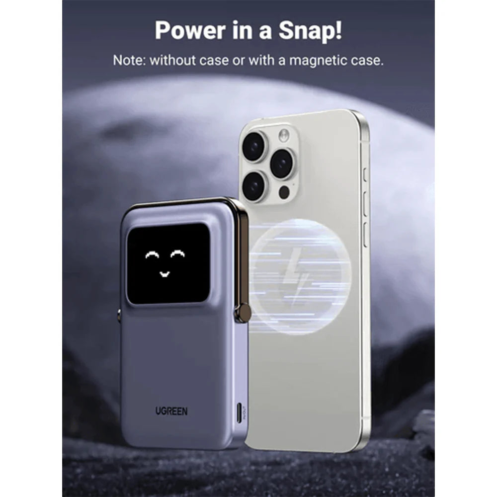 Description Robot-like Appearance: Ugreen magnetic power bank has a clear TFT display that shows different expressions according to the remaining battery level, allowing you to quickly gauge the battery status at a glance, adding a fun and personable element   Emergency Backup 5000 mAh: Magsafe power bank provides emergency backup...