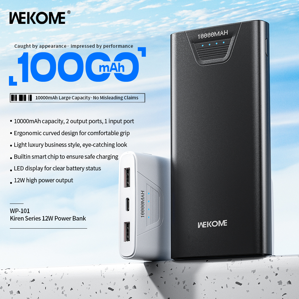 The Wekome Power Bank 10000mAh WP-101 offers reliable and efficient charging on the go. Its 10,000mAh capacity ensures multiple device charges, making it ideal for travel or daily use. Designed with high-quality components, it provides fast and safe power delivery while protecting your devices from overcharging, overheating, and short circuits. Compact and lightweight, this power bank easily fits in your bag or pocket, ensuring you stay connected wherever you are.