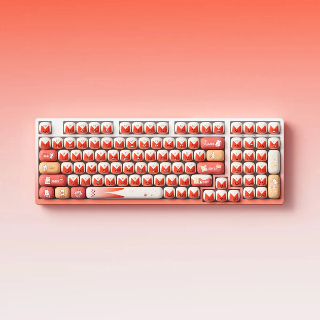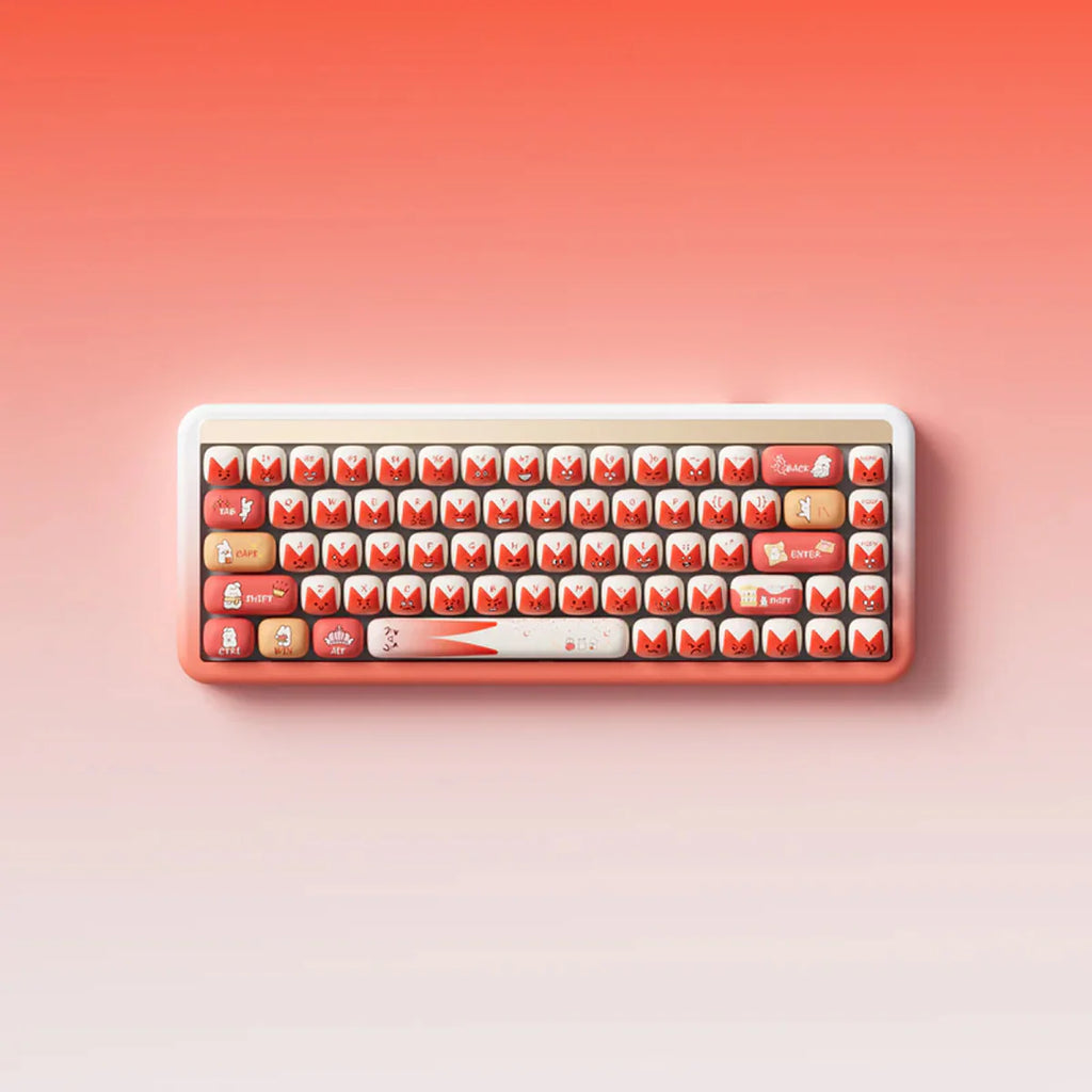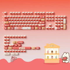 Akko's Bunny Apple keycaps showcase Bunny icons and emojis in an apple-themed colorway.The new MOG keycaps are produced under upgraded moulds with raised facial expressions zones, bringing each character on the keycaps to life.