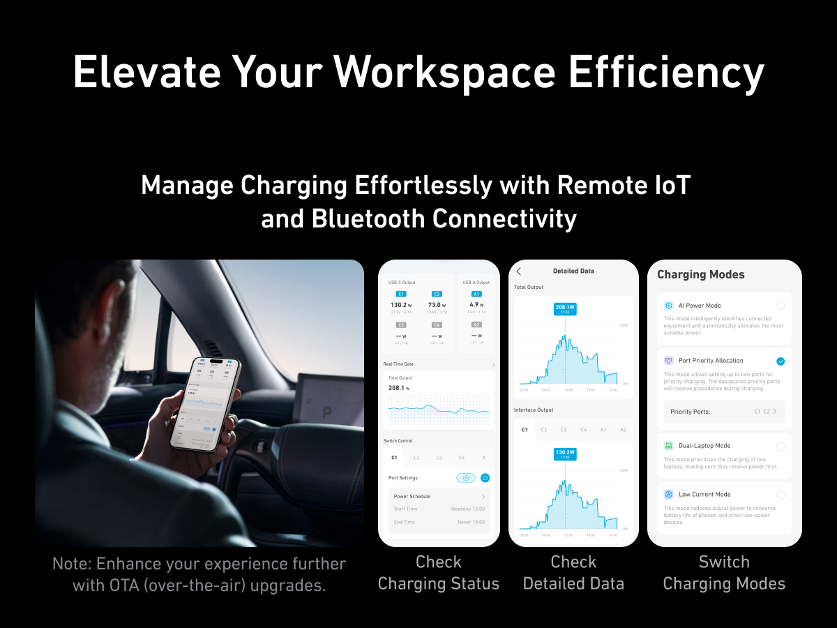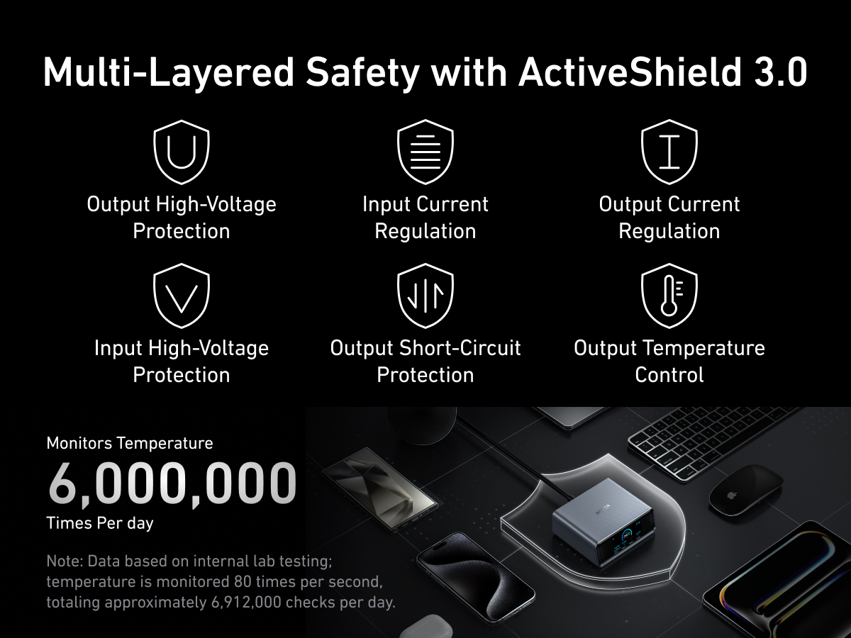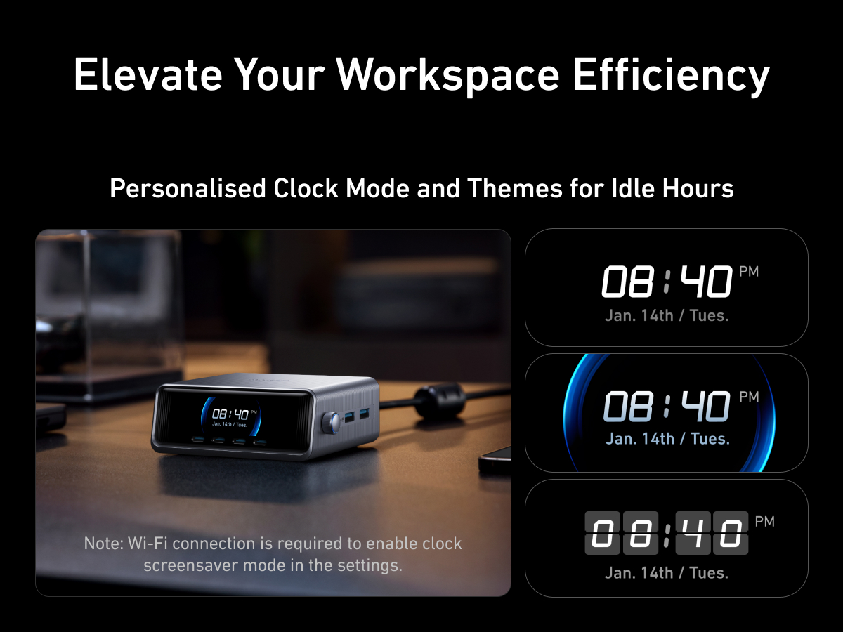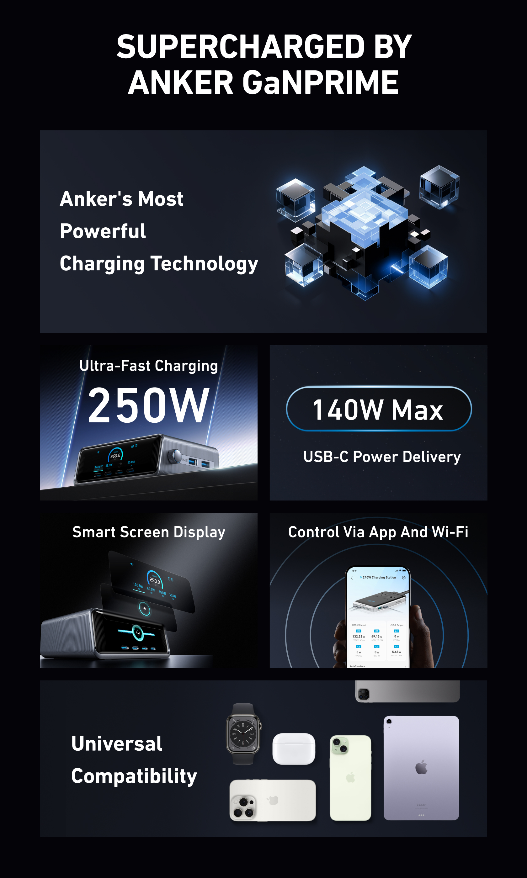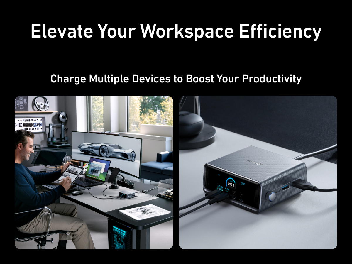 A 6-port, 250W GaNPrime charger with 140W PD3.1 fast charging, LCD, and twist button control for efficient multi-device power management.