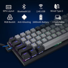 Introducing the E-Yooso Z-11 Tri-Mode RGB 63Keys Hot Swappable Mechanical Keyboard in Grey/Black with Red Switch.