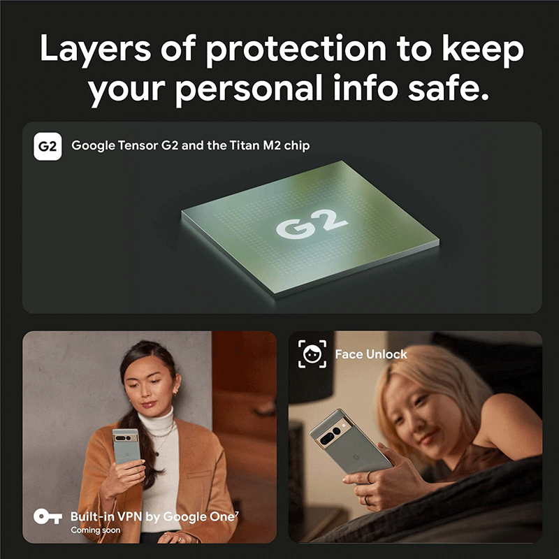 With Google Tensor G2 and the Titan M2 security chip, Pixel is built with multiple layers of security to help keep your personal info safe.