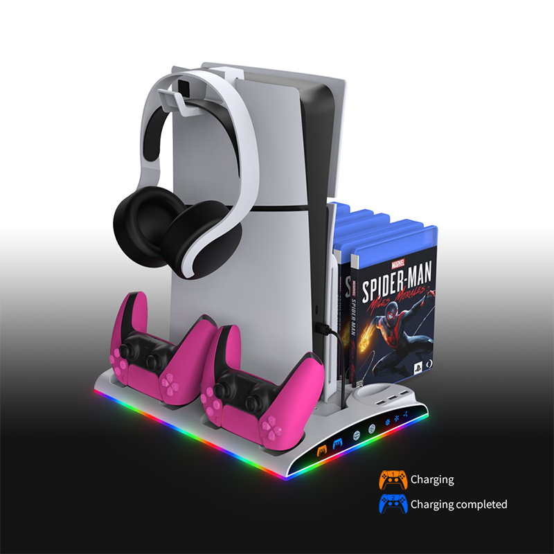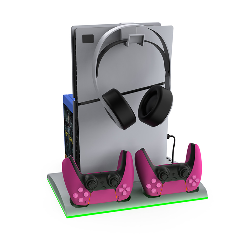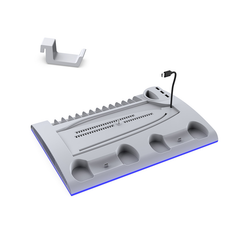 The Hozkaii HP5-5002 delivers professional-grade support for PS5 Slim and Pro consoles in an elegant white finish. This multifunctional stand incorporates dynamic RGB lighting to personalize your gaming space while maintaining optimal console positioning for superior airflow and heat dissipation. Engineered with precision-fit design, it securely cradles your console and organizes peripheral cables for a clean, streamlined setup. The robust construction ensures long-term durability, making it an essential accessory for gamers who demand both functionality and visual sophistication in their entertainment center.