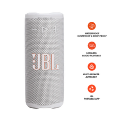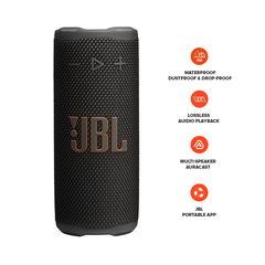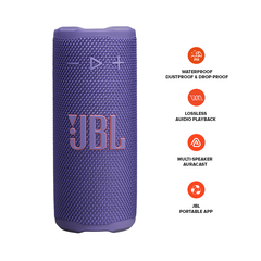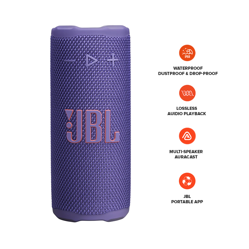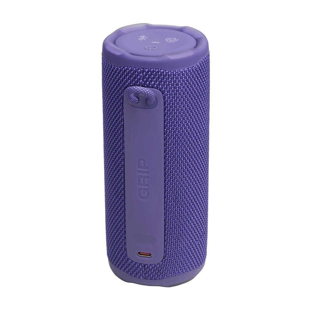 Easy to grab and easy to hold, the JBL Grip is the speaker that’s always within reach. The JBL Grip is powerful for its size. JBL Grip may be compact, but its pro sound is big—punchy bass and crystal-clear highs. Whether it’s setting the vibe for mindful morning stretches or soundtracking lazy beach days, the JBL Grip is our go-to. The built-in ambient light on the back panel adapts to the moment, so you can set the mood for chill date nights and spontaneous hangs. Use the convenient side-panel control button to switch between light themes, so the mood is always right whether you're winding down or turning up. Did we mention it’s super tough? The JBL Grip is built to handle anything. With an industry-leading IP68 waterproof and dustproof rating, it goes wherever we do. Its drop-proof design means it can survive a hard fall onto concrete—no party fouls here. All that, plus up to 14 hours of playtime with Playtime Boost. When friends roll through, we’re using Auracast™ to stereo pair two Grips for instant surround sound. Why stop there? We can connect as many JBL Auracast™-enabled speakers as we’ve got for an all-out sound experience. Solo chillin’ or vibing with the crew—the JBL Grip is as flexible as we are.
