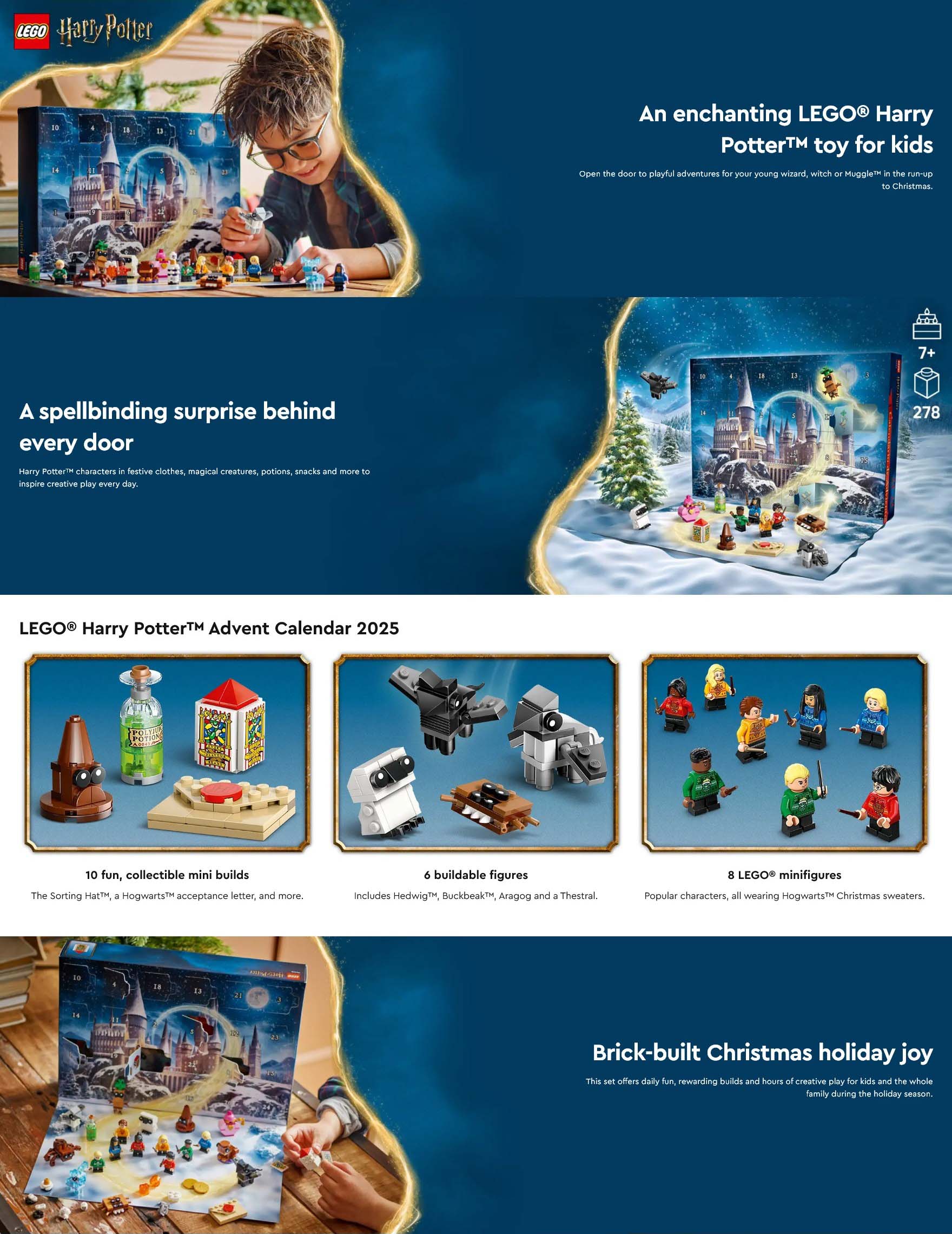 Open the door to playful wizard adventures every day in the run-up to Christmas with the LEGO® Harry Potter™ Advent Calendar 2025 (76456) toy building set for kids. A magical Harry Potter Christmas holiday gift toy for boys, girls and any fans aged 7 and up, it is packed with buildable surprises to create festive stories in the Wizarding World™.