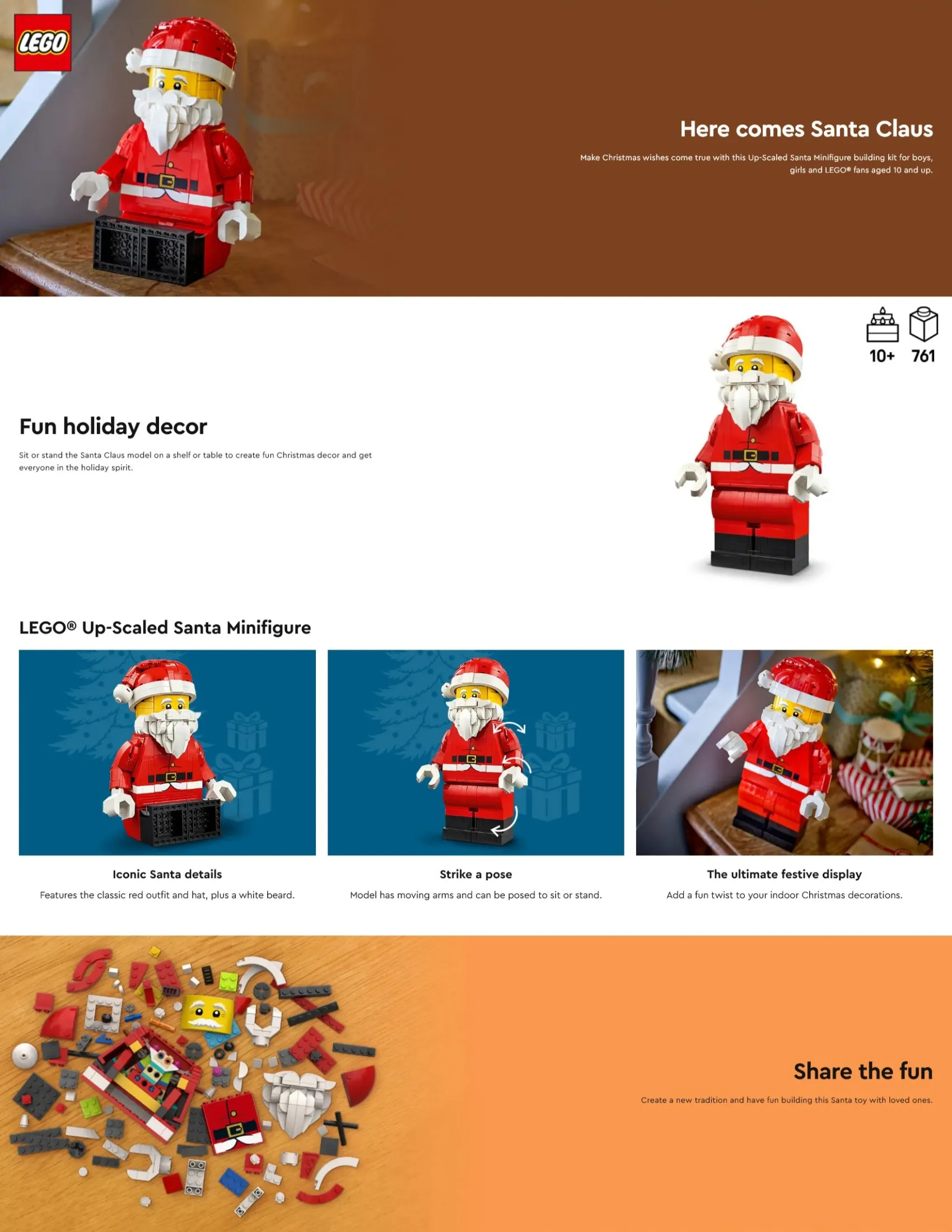Iconic Santa details – The red and white color scheme of this LEGO® Santa Claus model brings festive cheer to any home with a holiday decoration to enjoy throughout the season