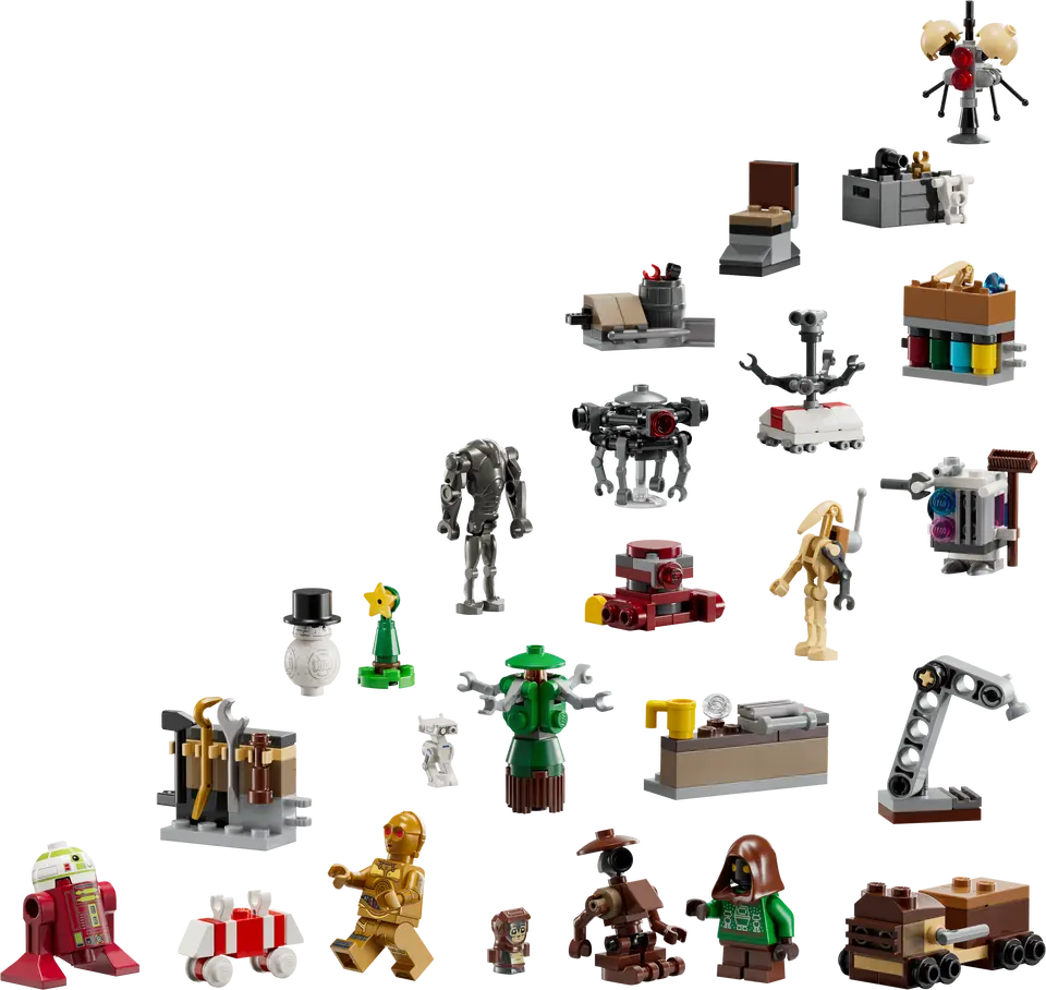 ICONIC LEGO STAR WARS CHARACTERS – Kids can discover C-3PO and Holiday Jawa LEGO minifigures, a Babu Frik LEGO figure, plus 5 LEGO droid figures: R7-A7, BD-72, Scrap Battle Droid, BB-8 dressed as a snowman, and Super Battle Droid