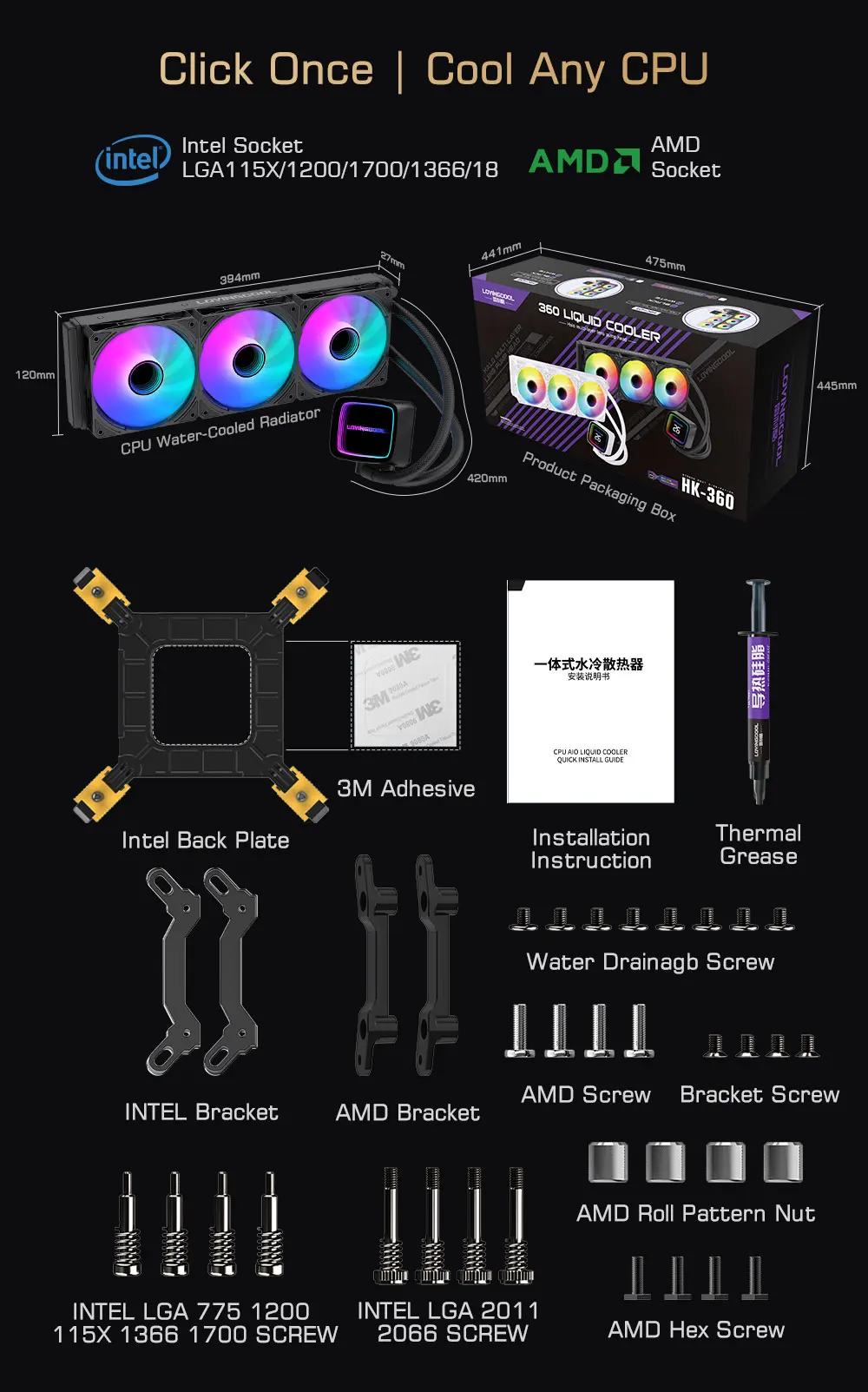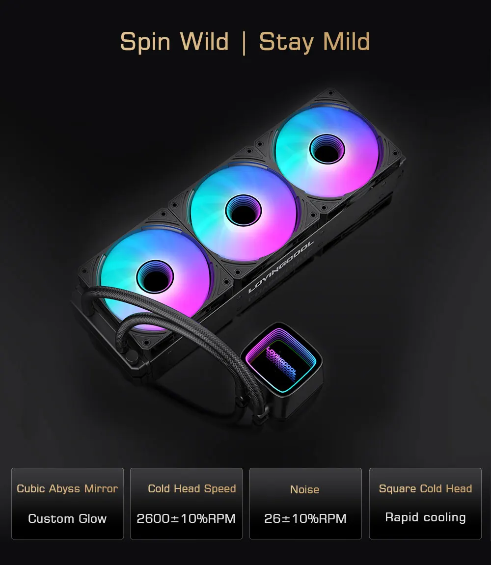 The Lovingcool HK-W120-01 delivers efficient CPU cooling with its 120mm all-in-one liquid cooler design. Featuring addressable RGB lighting synchronized across the pump block and radiator, this cooler adds visual flair to any gaming or workstation build. The integrated display provides real-time temperature monitoring, allowing you to track thermal performance at a glance. Compact 120mm form factor fits most modern CPU sockets while maintaining excellent heat dissipation capabilities. Ideal for enthusiasts seeking reliable cooling performance with customizable aesthetics and convenient temperature readouts.