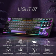 Geared with MageGee advanced Tri-mode connection technology, MageGee Light87 can support BT & 2.4GHz wireless modes and detachable USB-C wired mode, which make the user experience upgraded to another level in all fields.