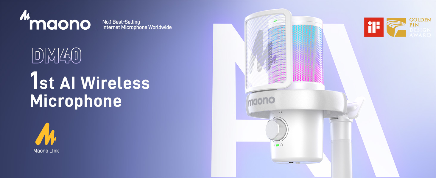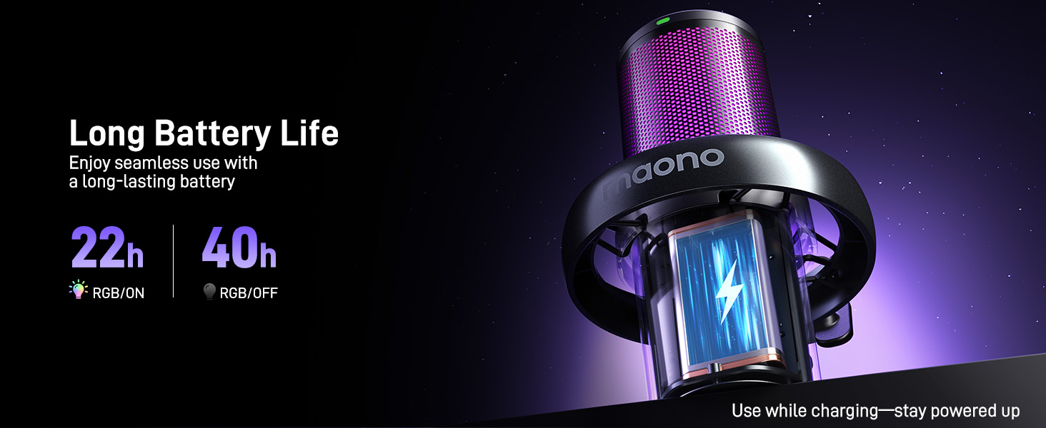 Instant Wireless Connection: The DM40 wireless microphone delivers clear, interference-free audio for precise sound delivery. Whether you're in a noisy environment or using it from a distance, it maintains exceptional sound quality. With up to 40 hours of continuous use, you won't need to worry about frequent recharging. Plus, The microphone eliminates the hassle of tangled cables, offering an easier setup and more freedom to move while you game, stream, or record