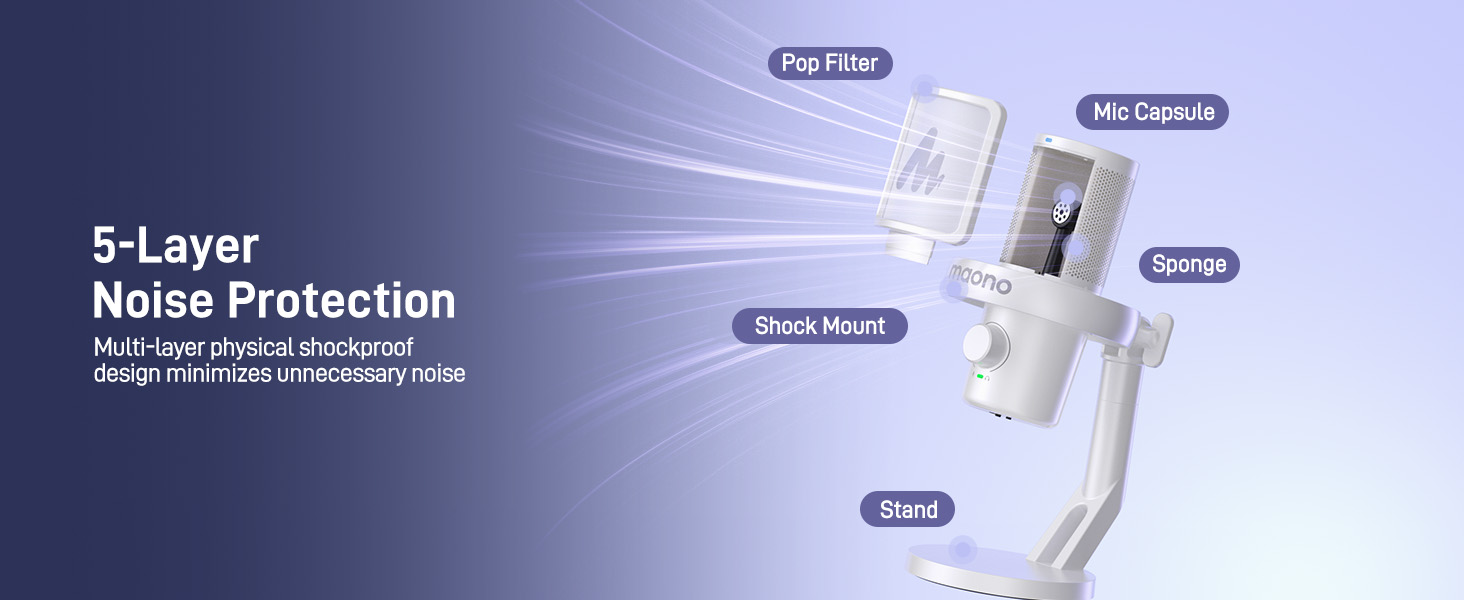 One-tap Noise Cancellation: This USB microphone features a one-touch noise cancellation button with three levels: light, medium, and high. You can adjust the noise cancellation intensity directly on the PC microphone or through the Maono Link app. It provides more precise and efficient noise reduction, ensuring clear and natural audio in any environment, making it especially ideal for gaming, streaming, recording, podcasts, Voice Recognition, broadcasting, and video conferences