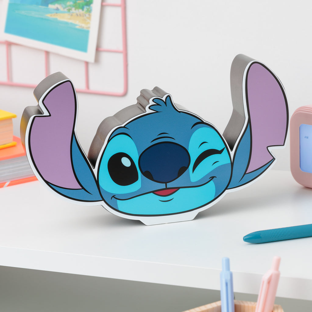 The 13cm (5.3") tall character light is shaped like Stitch's head. It features one of his mischievous expressions and his exceptionally large ears. Turn it on to cast a shining light across your room for an instant mood light.