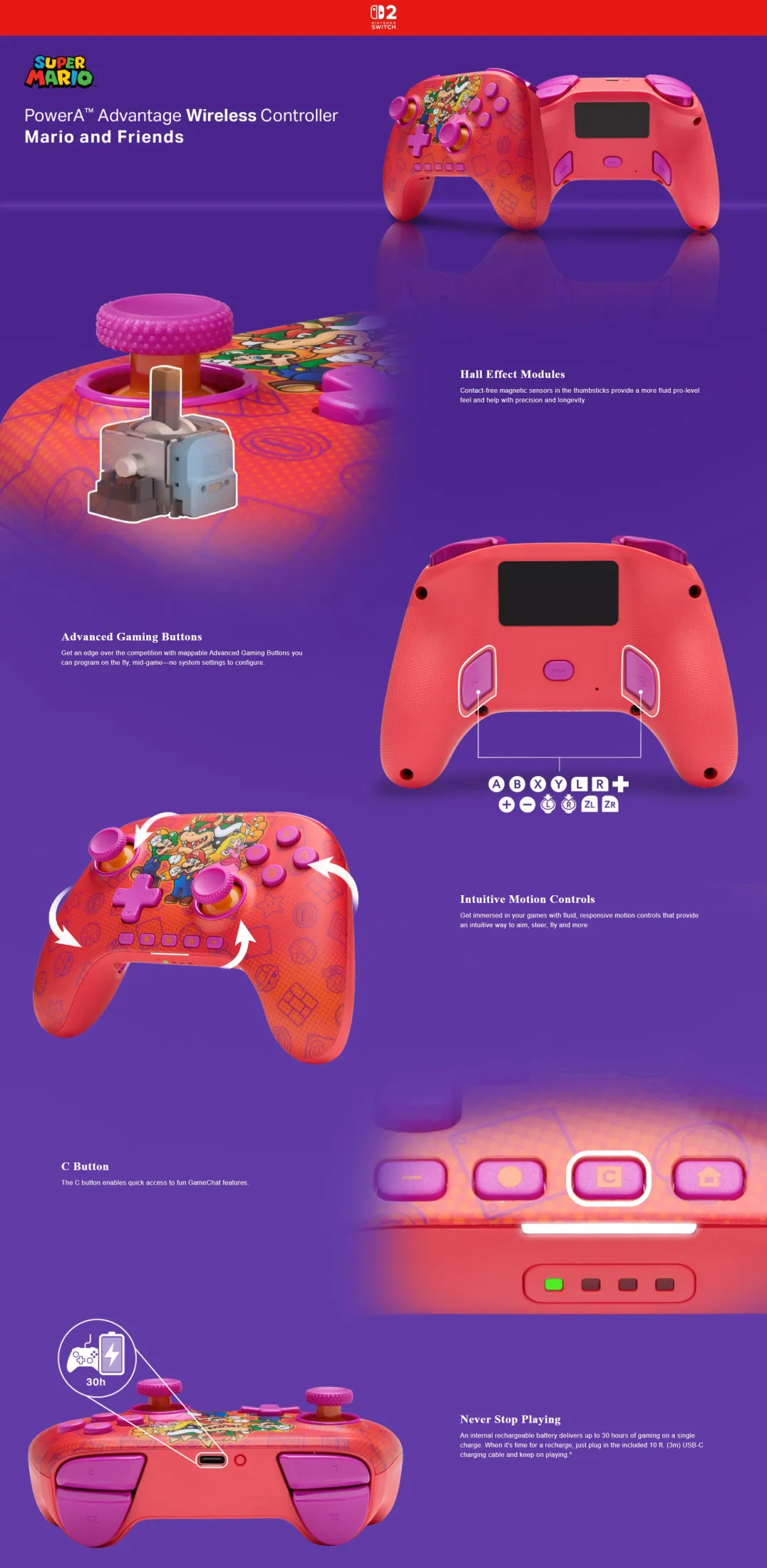 PowerA Advantage Wireless Controller for Nintendo Switch 2 (Mario and Friends) NSGP0548-01C