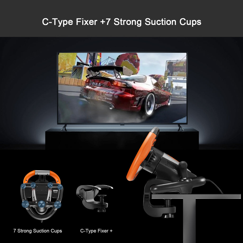 REALISTIC "COMPETITION" WHEEL DESIGN: Dual-Motor feedback driving force racing wheel to provide realistic gaming experience, Intelligent auto-adjust vibration levels according to different driving scene.10.24inch/26cm in diameter, with an ergonomic design;
