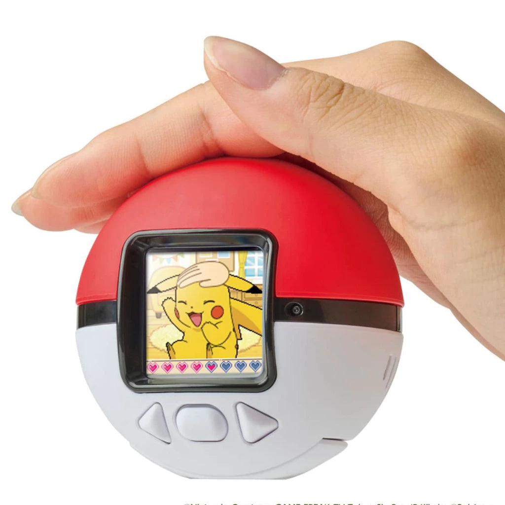 The more you pet, the closer you become with your Pokémon. A Monster Ball-shaped LCD toy where Pokémon cutely respond when you “Pokenade”! Enjoy living with your Pokémon!