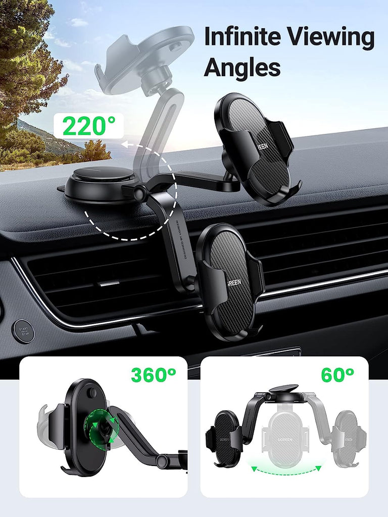 Hold Firmly and Keep Steady: With the upgraded suction cup, this UGREEN Dashboard Phone Holder ensures stable adsorption while driving on bumpy roads.